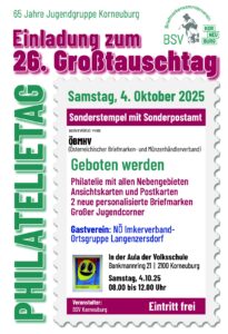 Hallo! WIllkommen beim BSV Korneuburg!Wie werde ich Mitglied?Das Anmeldeformular bitte ausfüllen und senden an:bsv.korneuburg@gmail.comZUM Anmeldeformular Einladung zum 26. Großtauschtag am Samstag, den 4. Oktober 2025 in der Aula der Volksschule Korneuburg. Nächste Tauschtage: WANN 18. Juli 2025 18h8. August 2025 18h19. September 2025 18h17. Oktober 2025 18h 21. November 2025 18h19. Dezember 2025 18h (Weihnachtsfeier) WO Restaurant „Zur Linde“Stockerauerstraße 382100 Korneuburg KONTAKT E-Mail:bsv.korneuburg@gmail.com2100 Kbg, Eberlegasse 20/1 Envelope